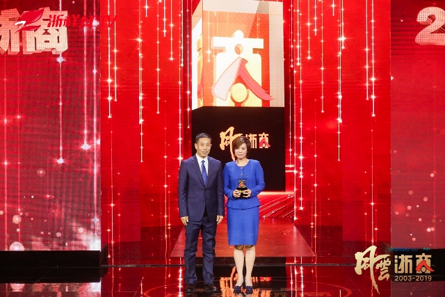 今日,公司董事长王萍女士等十位浙商获得了2019年度风云浙商的殊荣并参加了在杭州举行的颁奖典礼。“风云浙商”一直被誉为浙江经济界的’奥斯卡“。图为浙江省人大常委会副主任李学忠为王萍颁奖。